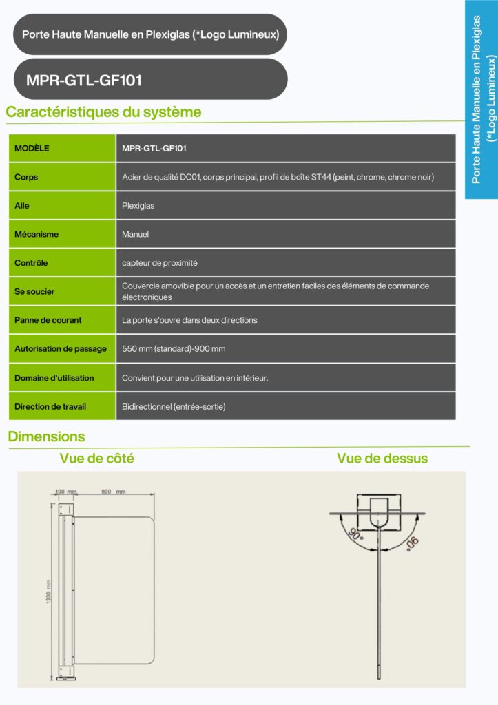 Porte haute manuelle en plexi (*avec logo éclairé)