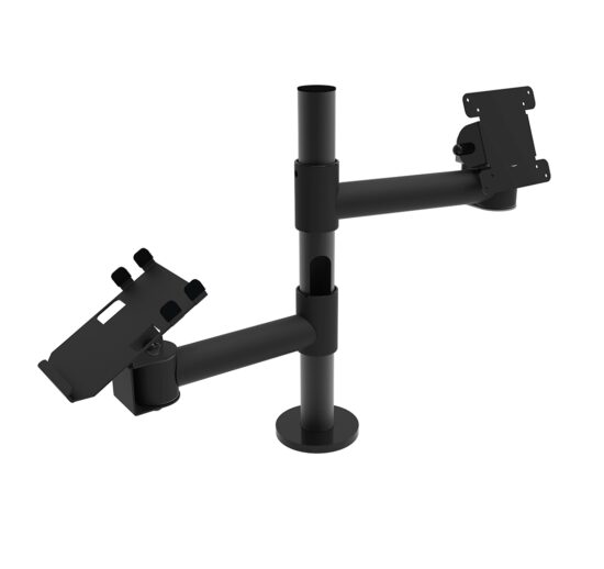 Support Multi TPE Deux bras dos à dos Vesa 75-100 + Support terminal de paiement une carte + support pour lecteur de carte de fidélité H400