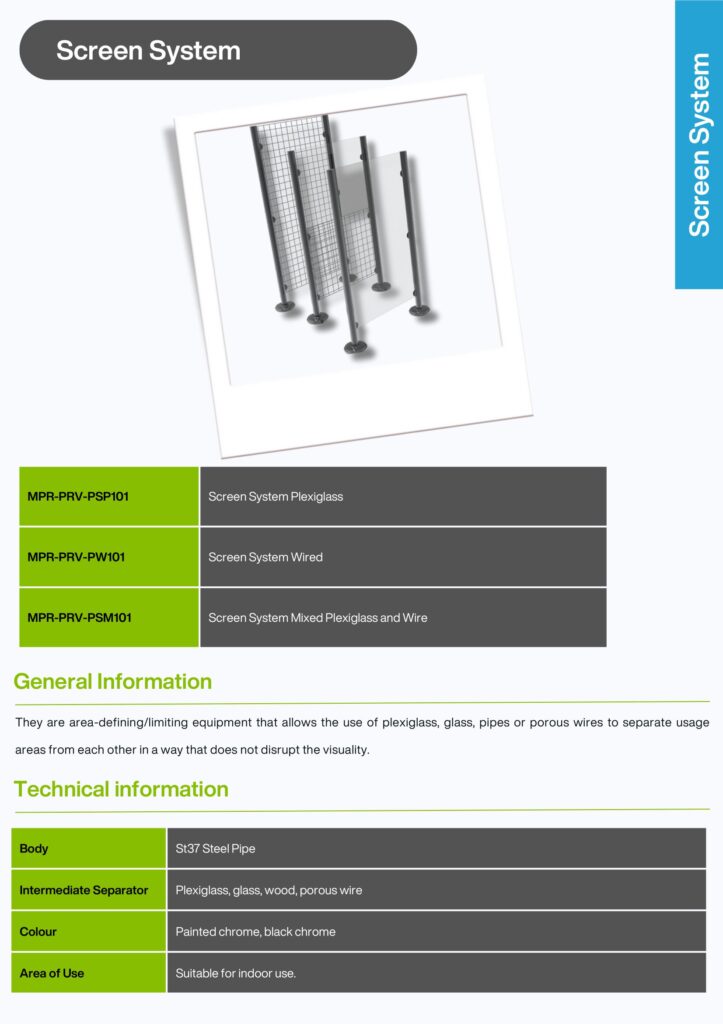 They are area delimiter equipment that can be used with plexi, glass, pipes or porous wires to separate the usage areas in a way that does not disturb the visuality.
