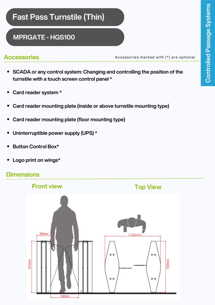 | Adjustable Auto Shut-Off | Wings that automatically close back after the time defined in the system expires in cases where passage permission is granted but not carried out. |