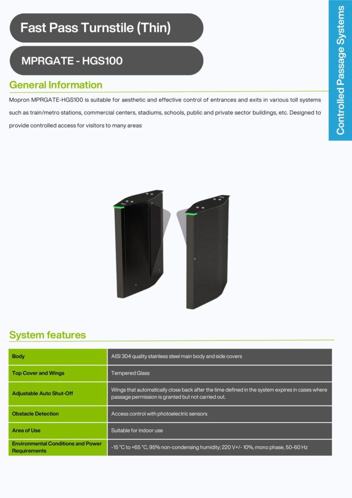 | Adjustable Auto Shut-Off | Wings that automatically close back after the time defined in the system expires in cases where passage permission is granted but not carried out. |